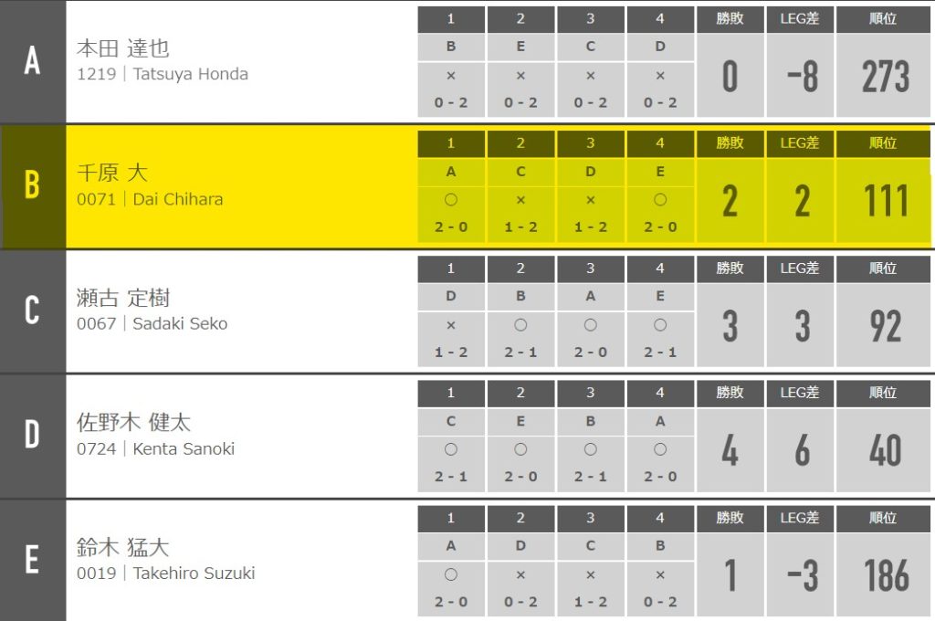 1回戦目はシード。2回戦目は予選と同じBest of 3leg。