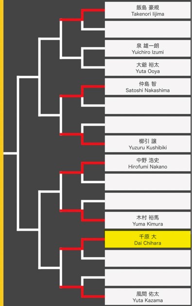 予選順位112までがシードを獲得できる。ギリギリの111位で予選通過。決勝トーナメント表はこんな感じ。