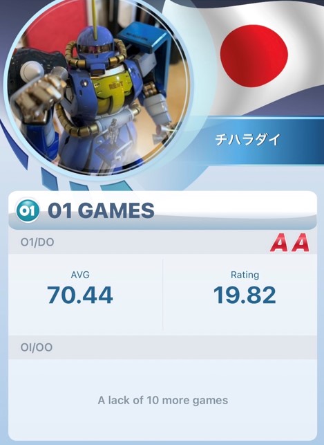 2leg目、後攻スタート。飛びは悪いがなんとかT20に絡むには絡んでくれているので勝負にはなっていた。このレグは相手がしっかりとアウトを決め負け。