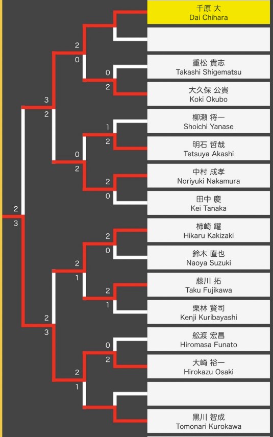 予選終了後の結果と決勝トーナメント表はこんな感じ。シードを勝ち取った。
