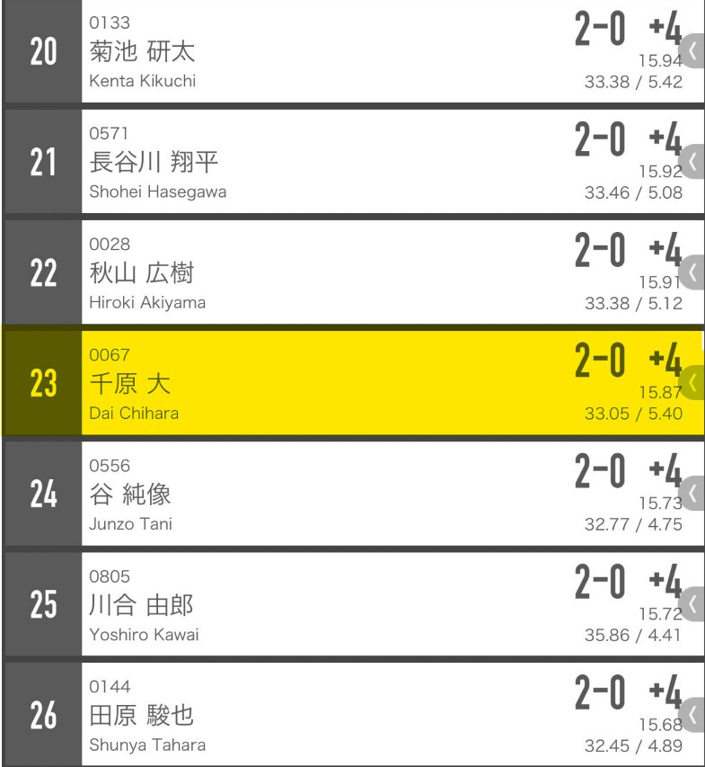 3本目はきっちりブルに入れられ負け。JAPAN京都大会は4回戦負けで終了した(MPR4.13)