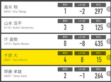 <決勝トーナメント3回戦>※ここから5legになる。