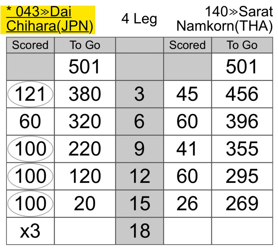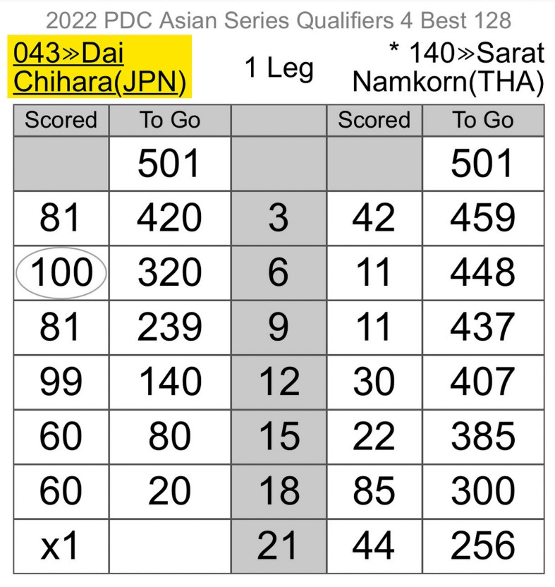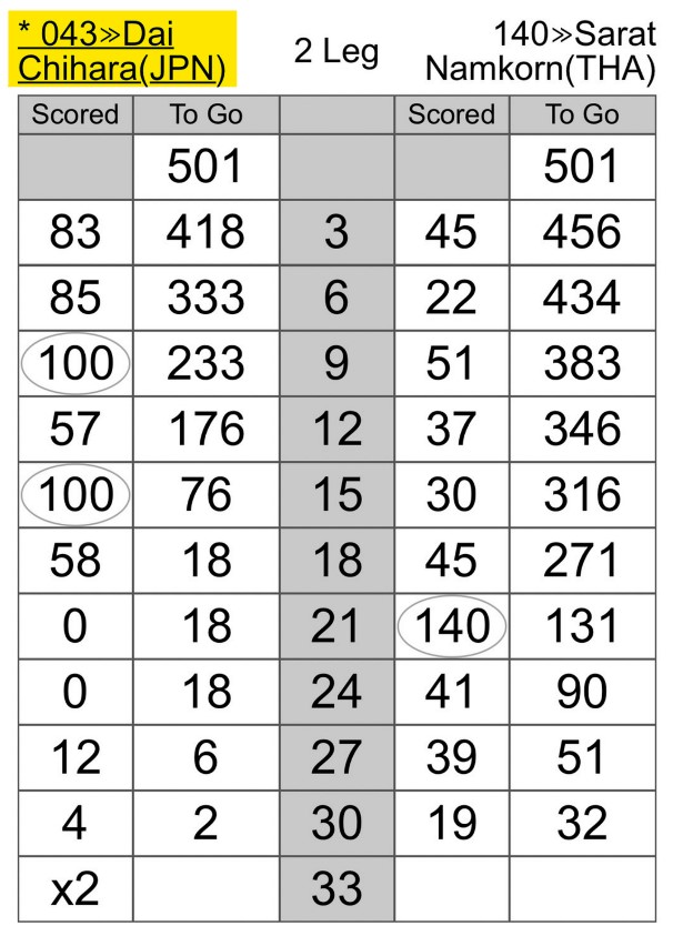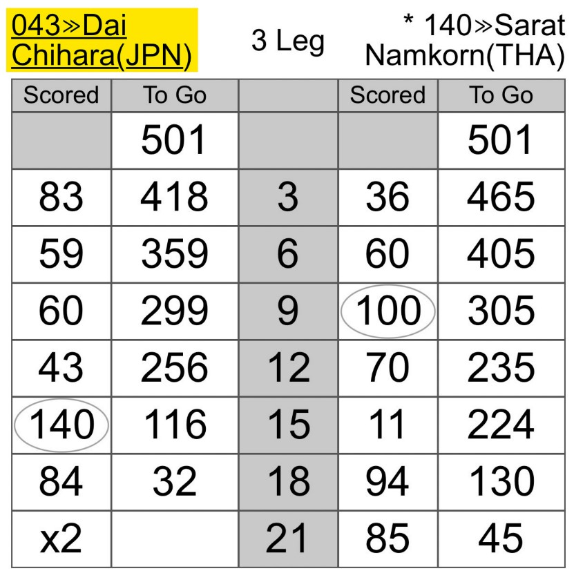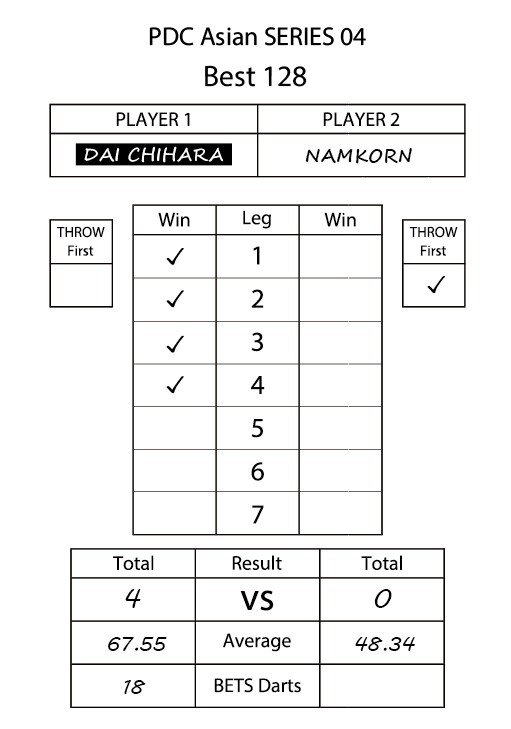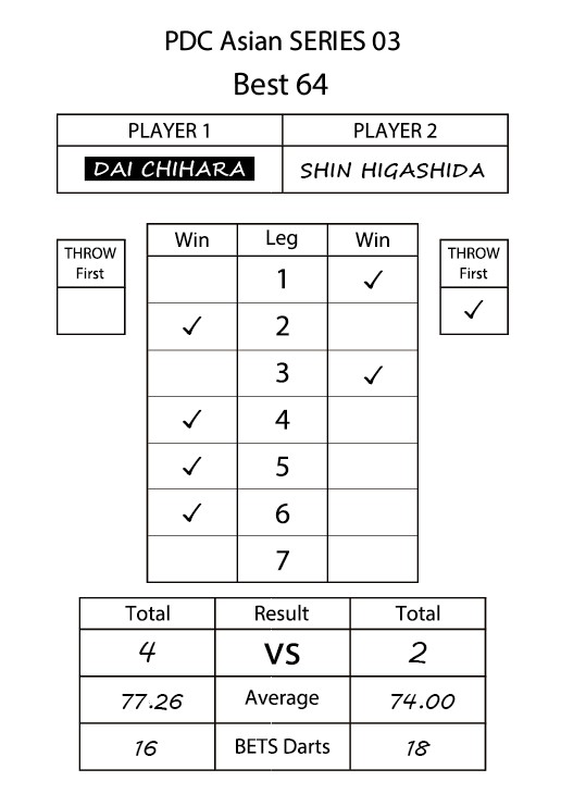5leg目のブレイクが大きかった。そのままの流れで6leg目キープでベスト64を突破。飛びや刺さりに関してはたまに良い時がある。次の試合につなげたい。