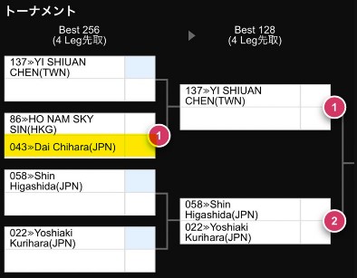 ここも勝利。これで昨日の2大会とあわせて2ポイント。次がベスト64の試合。結果はこちら。