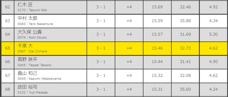 予選ロビン平均 PPR32.73(平均7.1R 21.4本) MPR4.62