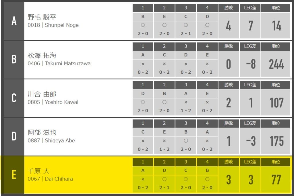 反省点として、焦りによるリズムが早くなってしまっていたこと。気持ちの高まりにより冷静な判断ができなかったこと。3legと5legの確認ミス。調子がよかっただけに悔やまれる試合となった。