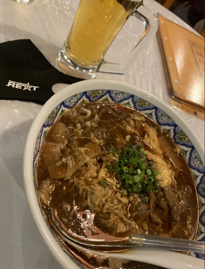 注文したのは「プレミアムスーラータンメン」「餃子」「ビール」の3つ。ビールは黒ラベルで普通のビール。次に餃子。大きくて安い。味は薄目。コスパはいいが、すごくおいしいわけではなかった。メインのスーラータンメンは、おいしかった。麺は3種類から選べて、オススメされた中太麺「揚州麺」をチョイス。もちもちした触感でとろみのきいたスープによく絡みおいしかった。具材もたくさん入って肉もやわらかい。少し酸味の効いたスープもすっぱすぎず丁度いい。非常においしかった。近所にあればまた行きたいと思いました。