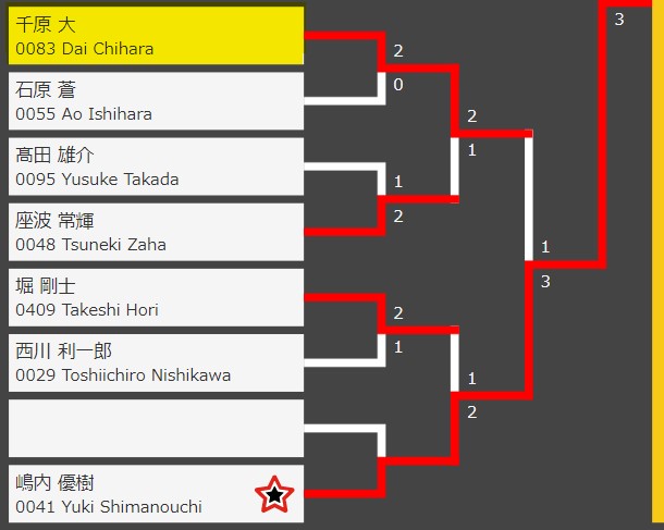 3回戦目から5leg。相手は嶋内プロ。久しぶりの対戦。そしてスターチャンス到来!前回はボコボコにされたのでリベンジに燃える!が、結果は1-3で負け。相手も強かったが、体力と集中力が足りなかったように思う。楽しむのも大事だが、負けたら意味がない。それでも楽しい試合だった。PPD??.?? MPR?.??