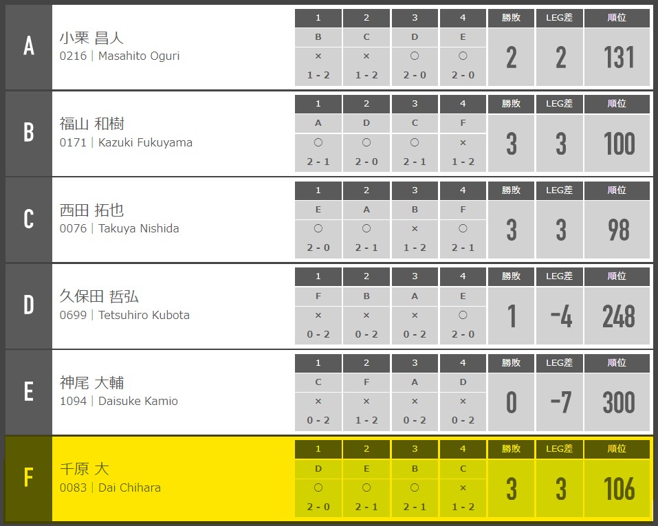 ここでも投げ急ぎ感を感じてしまっている。1回戦とは違って01の削りも悪かった。ただ、ここで閃きがあったのはよかった。次に活かしていく。