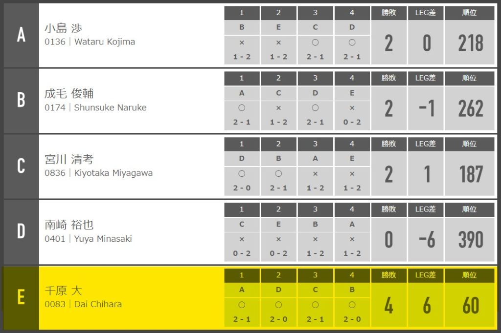 今回の予選ロビンはこんな感じ