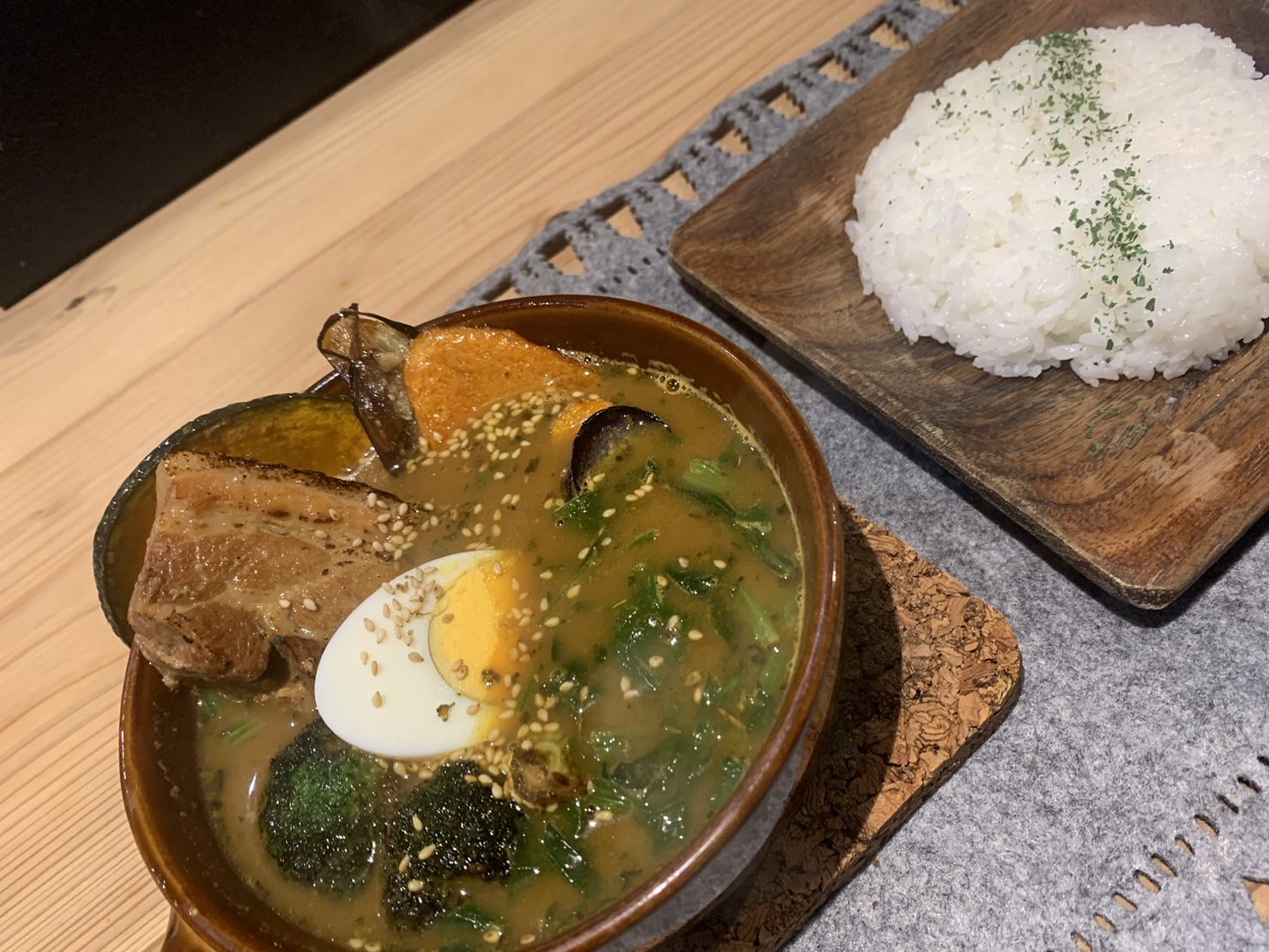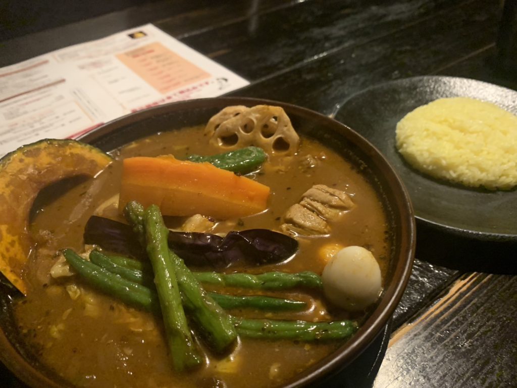 北海道では、いつもスープカレーを食べてます。お気に入りは「ラマイ(写真上)」いつもは豚の角煮のスープ大盛り、ライス300gなんだが、チキンをトッピングしてライスは150gに。写真載せておきます。いろんなスープカレー屋さんありますが、なかなかラマイ超えをする好みのスープカレー屋に出会えない。そして2日目もスープカレー。「札幌スープカレーBAR暖(写真下)」味・店・スタッフ・メニューなどなどトータルやっぱりラマイの勝ち。どちらもキャッシュレス対応していないのが大きな減点w