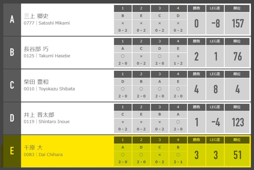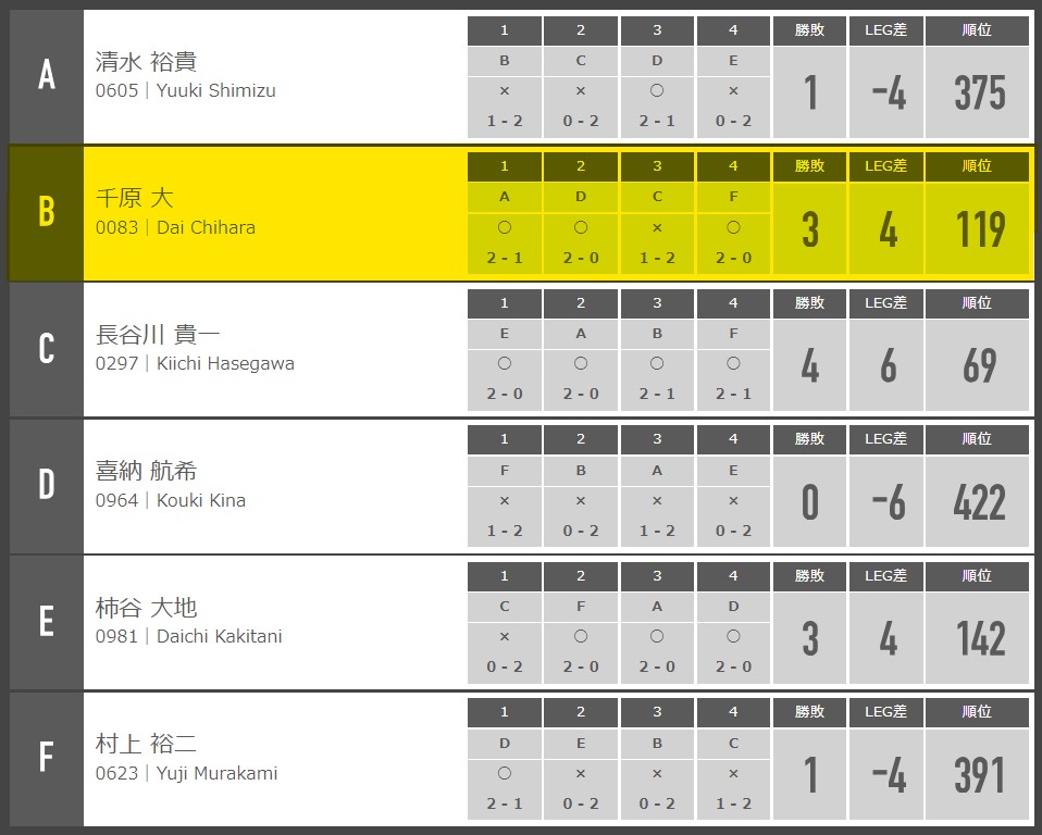 予選ロビン結果はこんな感じ