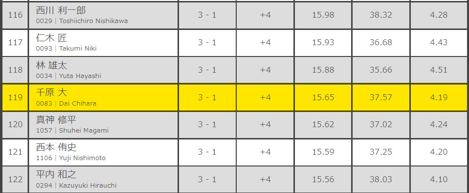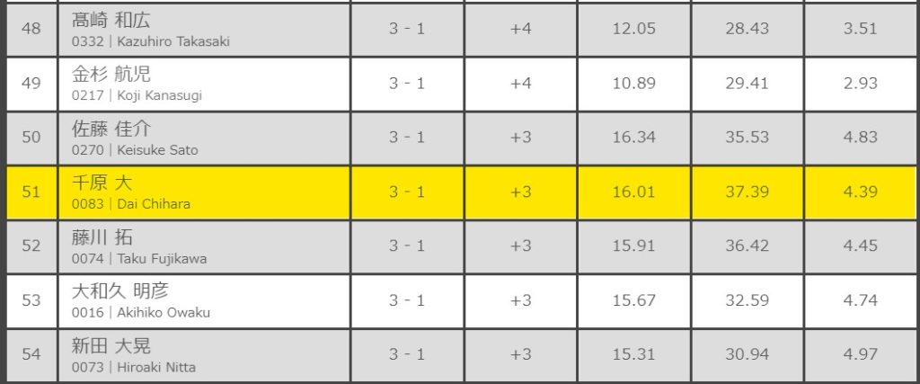 PPD38.94(6R3本目18本)MPR6.22 2-0+4