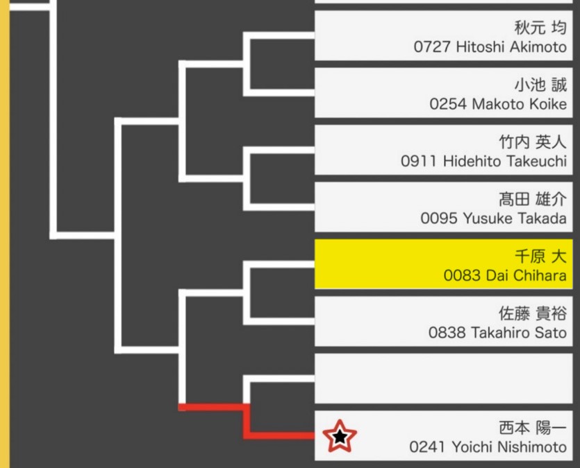 予選ロビン2試合目は、1試合目みたいな試合をすると負ける相手です。以前の大会でタクシー待ちをしているところに「一緒に乗ってもいいですか?」と図々しく相席タクシーさせて頂きました。そこから声をかけてもらえるようになりました。この試合、相手もめちゃめちゃ入れてきましたが、なんとか競り勝ちできました。残り8点からのS4→S2→D1しびれました。