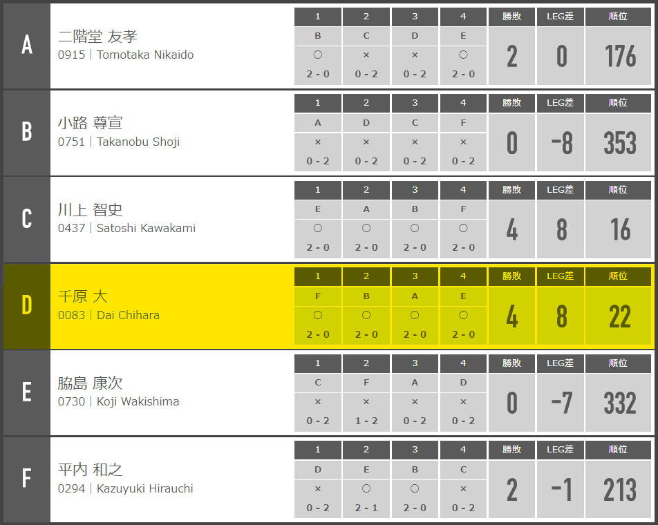 今回はセパレートブル形式。予選ロビンはこんな感じ