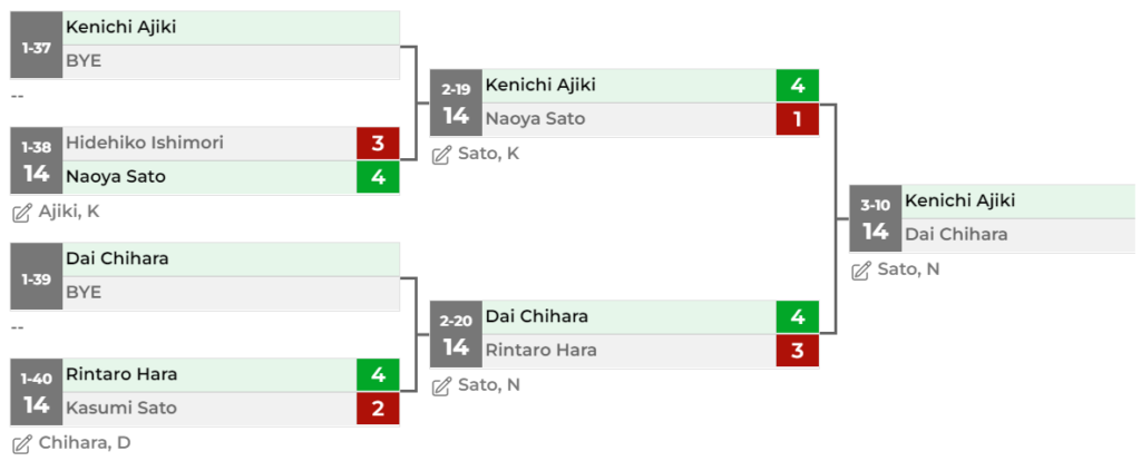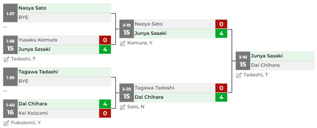 参加人数が100人ちょっとということもあり、ベスト128からのスタート。なので、ベスト32は、2回戦まで勝ったということになります。