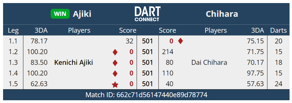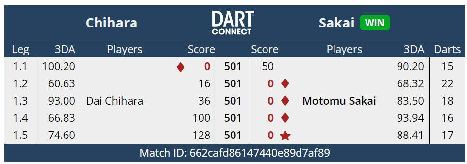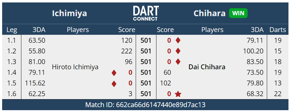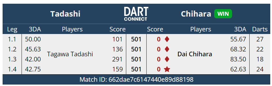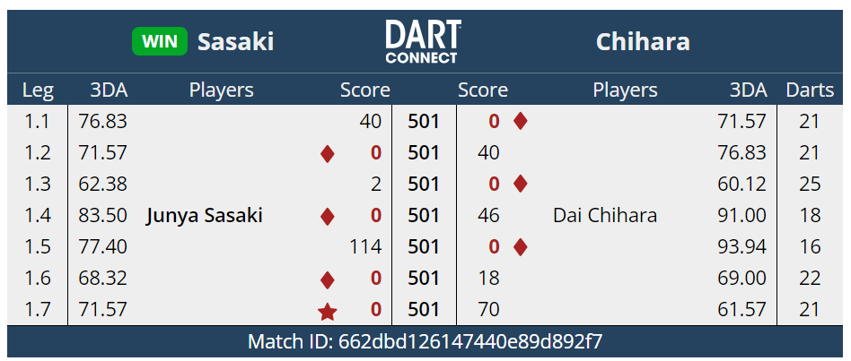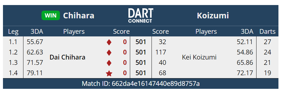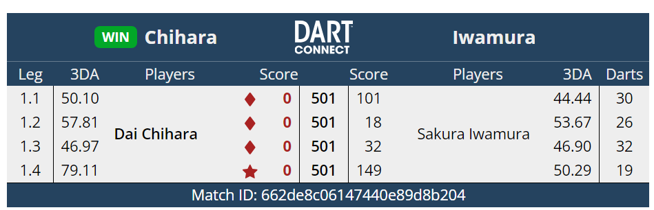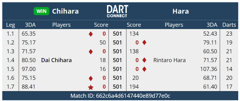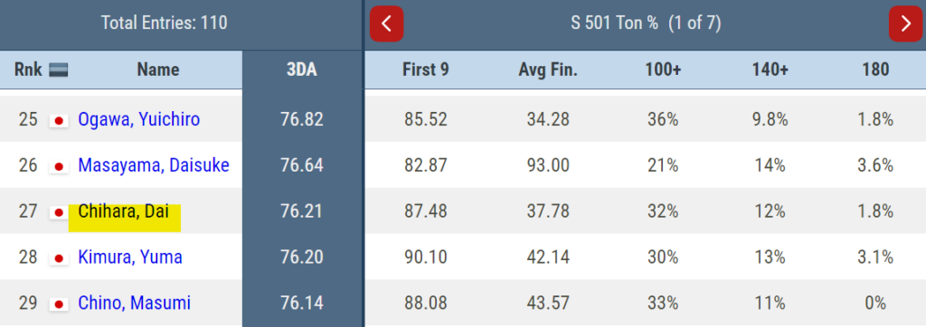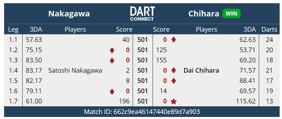 ベスト32。上りがうまくかみ合わずとれるlegが獲れなかった試合だった。それより能力値の違いを感じさせられた。やっぱりうまいなぁ~